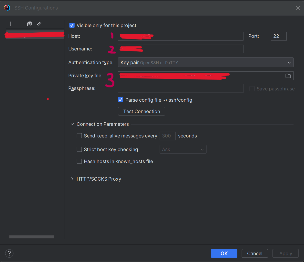 3. 확장자pem인 키파일 등록(이건 프로젝트 같이 하는 사람한테 전달받은거라 어디서 가져오는지 모르겠음)